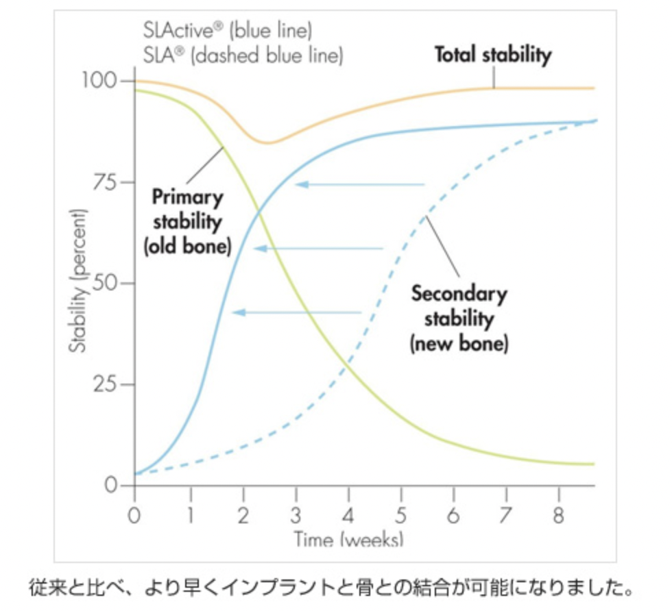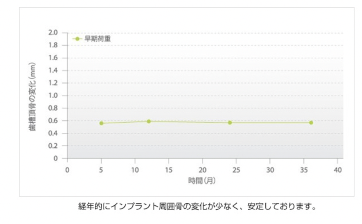顎の骨とよく生着し、インプラントの周囲骨の経年変化が少なく、安定するものを選択しております