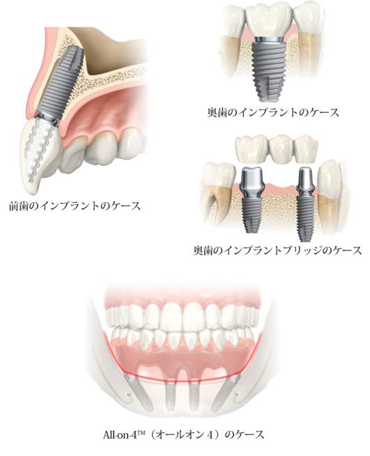 インプラント治療は失われた歯の部分、本数によって様々な治療法があります。