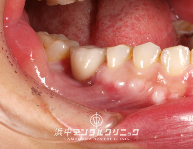 | 治療にかかった費用 | インプラント体(フィスクチャー308,000円)×1本 +インプラント土台(アバットメント77,000円)×1本 +インプラント人工歯(上部構造ジルコニアセラミック165,000円)×1本 +骨造成術(GBR)220,000円 +静脈内鎮静麻酔77,000円 +仮歯代22,000円×1本分 |